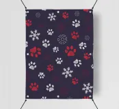 Impronte di zampe con impronte di zampe e fiocco di neve sfondo navy