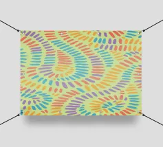 Questo disegno di linee presenta una composizione astratta di semplici e intricati percorsi dai colori vivaci. Le linee fluide sono disposte armoniosamente e conferiscono al disegno un effetto dinamico e labirintico.