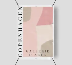 Un design minimalista che traduce la respirazione e la consapevolezza in forme e colori. Superfici delicatamente sovrapposte in verde tenue, rosa e nero formano uno sfondo calmo e organico. Le parole INHALE (orizzontale in alto a sinistra) ed EXHALE (verticale a destra) sono scritte in lettere maiuscole bianche e chiare: ridotte ma efficaci.