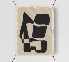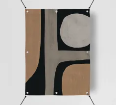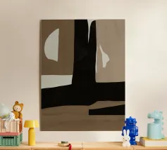 Forme astratte nei toni del marrone e del nero si scontrano e si sovrappongono per creare un senso di profondità e di intrigo. Le diverse tonalità suggeriscono un approccio minimalista, mentre le forme stilizzate invitano all'interpretazione e alla contemplazione individuale.