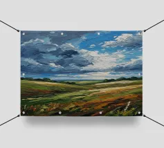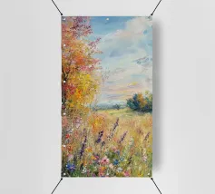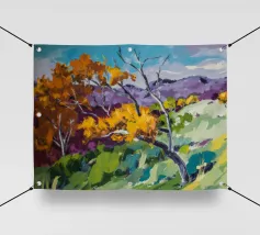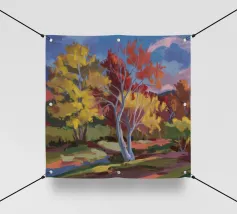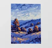 Questo splendido dipinto a olio originale, realizzato con una spatola, cattura la transizione mozzafiato di un paesaggio autunnale. La tecnica a impasto spesso crea una texture ricca e tridimensionale che rende l'opera viva. I tratti audaci di blu e viola vibranti delle colline e del cielo sono splendidamente contrastati dai caldi arancioni e gialli degli alberi autunnali. Questo pezzo è una celebrazione della luce e della struttura, perfetto per aggiungere un tocco di serena e dinamica bellezza a qualsiasi casa o ufficio. È un vero e proprio oggetto da collezione per coloro che apprezzano le qualità espressive e tattili di questa opera.