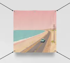 Sperimentate la massima libertà e avventura con le nostre opere d'arte vintage. Sentite il sole sulla pelle mentre guidate lungo la costa in una classica decappottabile. Immaginate il vento tra i capelli mentre una pattinatrice spensierata scivola sull'oceano. Questo capolavoro cattura la nostalgia di un viaggio in auto retrò e vi avvicina alla bellezza di una vita senza limiti. Perfetto per ogni appassionato di arte e avventura".