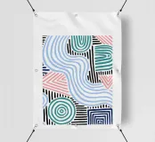 Linee curve in blu tenue scorrono tra forme grafiche in verde, blu, rosa e nero. Il vivace motivo combina un movimento giocoso con strutture chiare e disegnate a mano, creando un effetto complessivo moderno e creativo. Ideale per chi apprezza i disegni astratti, la line art ritmica e gli accenti colorati: perfetto per murales, tazze, cover per cellulari o tessuti decorativi. motivo astratto, design line art, motivo moderno, forme colorate, linee disegnate a mano, arte contemporanea, ghirigori geometrici, composizione astratta, arredamento moderno, motivo artistico.