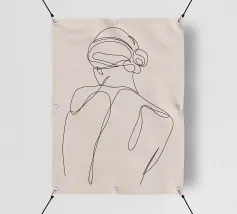 Un disegno minimalista che cattura la grazia tranquilla di una figura femminile vista da dietro. La sua silhouette, disegnata con un tratto continuo, evoca morbidezza, sicurezza e una tacita intimità. Un'elegante rappresentazione della forma femminile attraverso la semplicità e la fluidità.