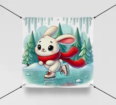 Due renne dei cartoni animati stanno pattinando su un laghetto ghiacciato e una mette in guardia l'altra da un buco nel ghiaccio. Le renne si scambiano dialoghi umoristici, aggiungendo un tono giocoso alla scena.