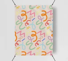 Questo disegno presenta una composizione astratta di linee e forme fluide in colori vivaci. Gli elementi sono disposti in modo armonioso e conferiscono al disegno un aspetto dinamico e giocoso.