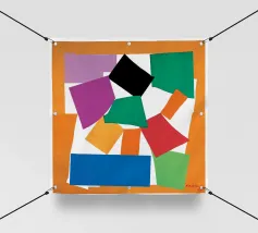 Un'illustrazione pop art con colori vivaci e forme organiche ispirate a Henri Matisse. Un pezzo giocoso ed espressivo