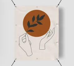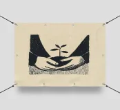 Due mani disegnate in nero sorreggono delicatamente una giovane pianta. Minimalista e ricca di contrasti su uno sfondo chiaro, la composizione combina protezione, crescita e cura tranquilla. Un'espressione grafica della natura, dell'equilibrio e di un'attenta connessione.