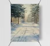 Una tranquilla mattina d'inverno si dispiega in questo dipinto d'atmosfera: un sentiero innevato nella foresta conduce attraverso alti abeti ricoperti di brina. La luce delicata del sole nascente filtra attraverso gli alberi e inonda il paesaggio di un caldo bagliore dorato. Le tracce sulla neve raccontano il movimento nella quiete: natura, pace e luce si combinano per creare un armonioso idillio invernale.