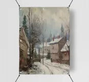 Una pittoresca mattina d'inverno in un tranquillo villaggio: le case coperte di neve, gli alberi slanciati e le lontane guglie delle chiese si stagliano dolcemente nella luce bluastra. Il sentiero tra la neve conduce l'occhio attraverso il tranquillo scenario ed evoca ricordi di tranquille giornate invernali. Il dipinto unisce nostalgia, tranquillità e bellezza naturale in colori armoniosi e pennellate raffinate.