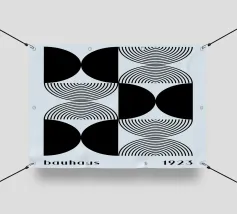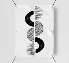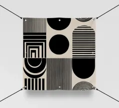 Il design pulito incontra la tensione visiva: questo motivo minimalista in bianco e nero combina forme geometriche come semicerchi, rombi e griglie di linee per creare un'opera d'arte moderna. Ideale come poster, cuscino, maglietta o murale - perfetto per gli amanti del Bauhaus, della metà del secolo e dei design monocromatici.