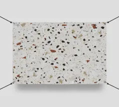Quest'opera d'arte è un vivace motivo ispirato al terrazzo, caratterizzato da una serie di frammenti di forma irregolare nei toni del verde acqua, del bianco e del grigio, accentuati da punte di arancione e giallo caldo. I pezzi sparsi sono collocati su uno sfondo verde menta, creando una composizione armoniosa e dinamica. Il design evoca un senso di modernità e giocosità, fondendo forme organiche con un'estetica pulita e contemporanea. Perfetto per l'interior design, i tessuti e le applicazioni digitali, questo pezzo cattura il fascino senza tempo del terrazzo con un tocco artistico e fresco.