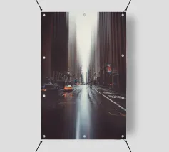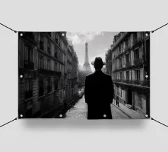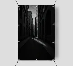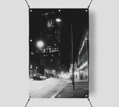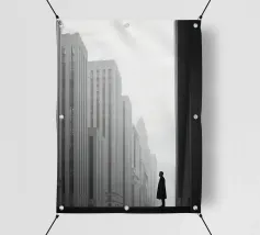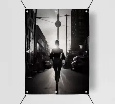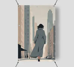 Un uomo, una città. Questo poster cattura l'attimo sospeso di una passeggiata solitaria per le strade vuote di New York, sullo sfondo di infiniti grattacieli. Una scena alla Hopper, con cemento e silenzio. Poetico, freddo, potente.