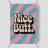 Poster vintage con la scritta "Nice Butt" in grassetto tipografico. Lo sfondo rosa e blu con motivi colorati e vorticosi, la texture giocosa e l'effetto serigrafico retrò creano un design vivace, spiritoso ed elegante con un look vintage.