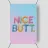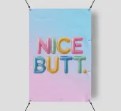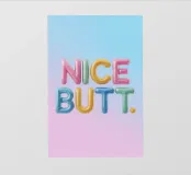 "Nice Butt" in lettere colorate e pastello con un aspetto giocoso e carino su uno sfondo semplice. Design umoristico e affascinante con uno stile estetico e una tipografia moderna.