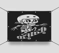 Scatenatevi sul surf con questo fantastico skeleton rider! Questo disegno raffigura uno scheletro che sfreccia con stile su un'onda colorata. È un mix perfetto di cultura balneare e un tocco di macabro. Prendete questo design radicale per la vostra prossima avventura in spiaggia (o semplicemente per avere un aspetto cool).