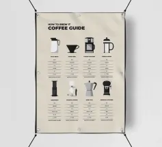 Stampa elegante con lo slogan "coffee time", caffettiera, chicchi di caffè e illustrazioni sul caffè. Perfetto come regalo per gli amanti del caffè, i baristi o come decorazione da parete per la cucina, il bar o l'ufficio. Un must per tutti gli appassionati di caffè.