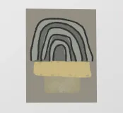 Opera d'arte astratta e moderna con forme organiche e geometriche e pennellate in verde, giallo e nero. Con sottili texture vintage, crea un aspetto e un'atmosfera retrò. Moderno, retrò, countryside, new countryside, natural living, bohémien e scandinavo.