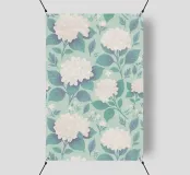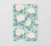 Grazioso motivo floreale con fiori di ortensia bianchi e foglie verdi su uno sfondo verde salvia.