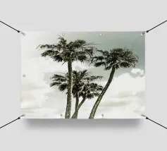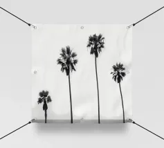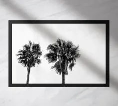 Due palme botaniche in bianco e nero in un parco di Marrakesh, Marocco.
