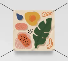 Un'illustrazione vivace e stilizzata di papaya a fette con foglie verde scuro su uno sfondo chiaro. Il motivo ripetitivo e il colore arancione brillante creano un'atmosfera fresca e tropicale.