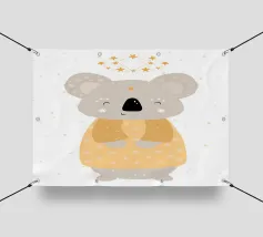 Un allegro koala con un lecca-lecca colorato. Ideale per illustrazioni a misura di bambino su dolci, animali e momenti felici.