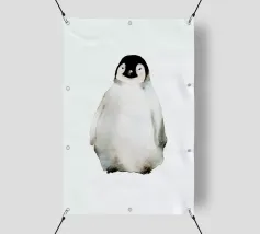 Un'illustrazione divertente ed elegante di un pinguino con papillon in una moderna tavolozza di colori verde acqua. Questa stravagante opera d'arte conferisce un'atmosfera giocosa ed elegante a qualsiasi parete. Perfetto per gli amanti degli animali, per le camere dei bambini, per gli uffici o come regalo unico.