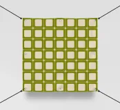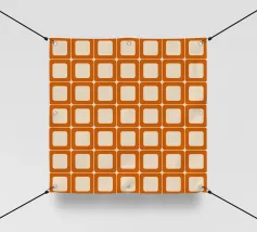 Questo disegno presenta quadrati verdi retrò con un'estetica di chiara ispirazione anni '60. Il suo fresco layout geometrico aggiunge un sottile tocco di colore, pur rimanendo pulito e moderno. Ideale per un arredamento eclettico e moderno.