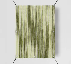 Un motivo ripetuto presenta un'alternanza di quadrati chiari e colonne a righe verdi, creando un effetto a scacchiera. Il design è minimalista e geometrico.