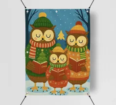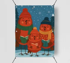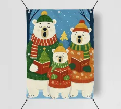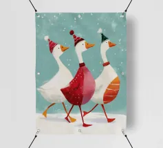 Questa festosa opera d'arte natalizia raffigura quattro giocose oche che indossano cappelli e sciarpe a maglia colorate e che danzano gioiosamente insieme in una foresta innevata di pini. Dipinto a mano in morbido acquerello, cattura lo spirito allegro degli animali del bosco in inverno. Perfetto per tessuti, carte da parati e accoglienti progetti stagionali, questo affascinante disegno aggiunge calore vintage e stravaganza alle tradizioni natalizie. Create da Uta Naumann, le oche portano la magia e l'allegria nostalgica delle feste, rendendole una scelta deliziosa per le celebrazioni festive, l'artigianato invernale e le decorazioni ispirate al bosco.