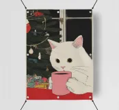 Questa bevanda nella tazza da caffè è vino caldo? Questa bevanda sembra molto invitante, ma fate in fretta o questo simpatico ed elegante gatto bianco giapponese berrà tutto il vino in un sorso, per celebrare questa accogliente notte invernale.