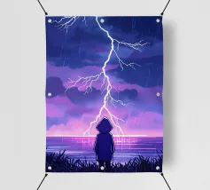 Ragazza in una giungla bloccata in una tempesta di fulmini notte Lofi Art