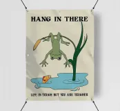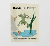 Questa illustrazione giocosa mostra una rana determinata che si aggrappa a una canna sopra uno stagno, mentre un pesce curioso osserva sotto. Con il messaggio ispiratore "La vita è dura, ma tu lo sei di più", quest'opera d'arte porta incoraggiamento, resilienza e motivazione. Un promemoria perfetto per rimanere forti nelle sfide della vita.