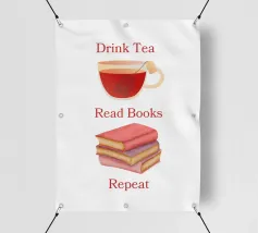 Un'ambientazione accogliente è caratterizzata da un cuscino, una lampada e due tazze, che evocano un senso di relax. La frase "Riposare, ricaricare, ripetere" rafforza il tema della calma e del ringiovanimento.