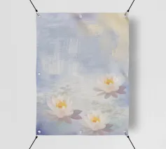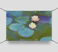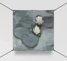 Questo elegante dipinto a olio mostra romantiche ninfee in morbide tonalità verde pastello che si riflettono nell'acqua, catturando la bellezza della natura in un lago armonioso.