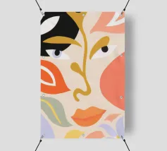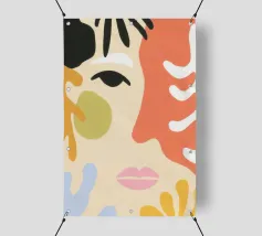 Il ritratto astratto di un volto è creato con linee blu fluide e ondulate su uno sfondo bicolore, dando vita a un'opera d'arte fluida, espressiva e moderna.