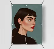 Il ritratto intenso e suggestivo di una donna con capelli scuri, occhi penetranti e un audace rossetto rosso รจ reso in uno stile pulito, moderno e realistico, che cattura uno sguardo di tranquilla forza e sicurezza.