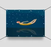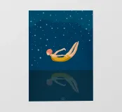 Un momento di quiete tra sogno e realtà: una donna in costume da bagno giallo galleggia senza peso sull'acqua, il suo riflesso si confonde nelle profondità notturne. Le stelle scintillano sopra di lei, il silenzio si trova sotto: un simbolo di coraggio, di lasciarsi andare e di tuffarsi nell'ignoto. Il poster combina un design minimalista con un fascino retrò e un tocco di malinconia. Perfetto per chi cerca calma, eleganza e profondità emotiva nella propria arte da parete. Ideale per camere da letto, soggiorni o spazi creativi che amano l'arte moderna e senza tempo.