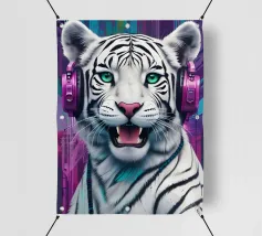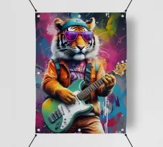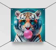 Questa tigre audace ed elegante, che sfoggia occhiali da sole riflettenti su uno sfondo a scacchiera vintage, conferisce un atteggiamento feroce e un tocco moderno a qualsiasi spazio. Un mix perfetto di energia selvaggia e disinvoltura.