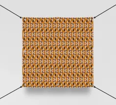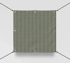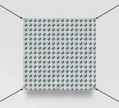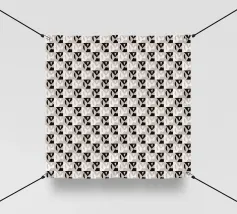 Un motivo ripetuto presenta forme geometriche nere su uno sfondo grigio chiaro, creando un design ritmico e visivamente accattivante. Le forme sono uniformemente distanziate e contribuiscono a creare un senso di ordine ed equilibrio.