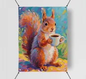 Scoiattolo che tiene una tazza di caffè con pittura fauvismo stile arte
