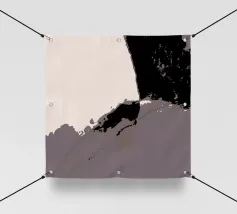 Una rappresentazione monocromatica presenta una forma accartocciata che ricorda in qualche modo una montagna o una formazione rocciosa. Le ombre e le lumeggiature sono state utilizzate per dare alla forma un aspetto tridimensionale, e poggia su uno sfondo più scuro che ne esalta la silhouette.