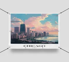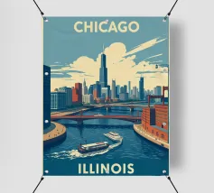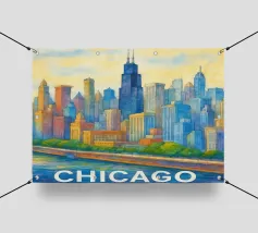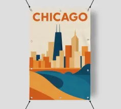 Questo poster mostra l'imponente skyline di Chicago nel caratteristico stile lino print, con la dominante Willis Tower al centro e il lago Michigan in primo piano. Perfetto per gli amanti dell'architettura americana, dell'estetica dello skyline e dei classici poster cittadini. Ideale per soggiorni, uffici o pareti creative dal sapore urbano.