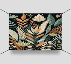Questa elegante stampa botanica astratta presenta un'armoniosa miscela di foglie e fiori delicati nelle rilassanti tonalità del blu, del verde e del pesca. Il motivo si staglia su uno sfondo nero profondo, creando un'atmosfera sofisticata e rilassante. Perfetto per aggiungere un tocco di natura all'arredamento della vostra casa.
