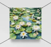 Questo pezzo accattivante cattura la tranquilla bellezza di uno stagno assolato pieno di eleganti ninfee bianche e dorate. Le ninfee verdi fluttuano con grazia sull'acqua blu riflettente, creando una scena tranquilla e serena. Il bagliore morbido e radioso dei fiori e il delicato luccichio dell'acqua evocano un senso di calma e armonia naturale, rendendolo un'aggiunta perfetta a qualsiasi spazio che cerchi un tocco di tranquillità.