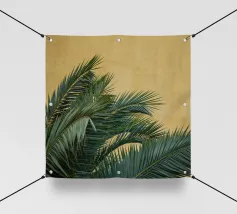 Ombra di una palma sulla parete. Parete color pastello con l'ombra di un albero in Arabia Saudita.