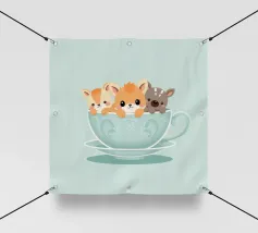 Simpatici gattini con tazze di caffè. Design di Buon Natale