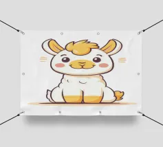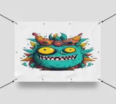 Un simpatico e soffice mostro giallo con corna colorate e grandi occhi: un motivo allegro per i bambini e gli appassionati di disegni kawaii.