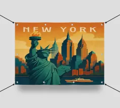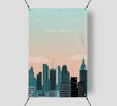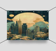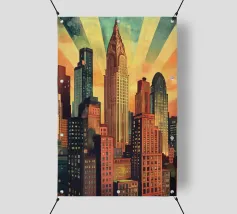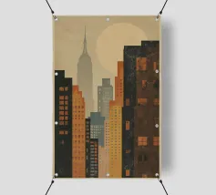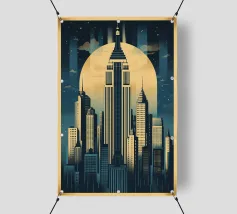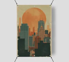 Grattacieli stilizzati dai colori intensi per un'immersione grafica nello skyline moderno. Questo poster rende omaggio all'architettura verticale e al ritmo delle grandi città, con la sua combinazione di potenza architettonica ed eleganza minimalista.