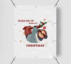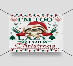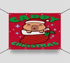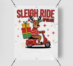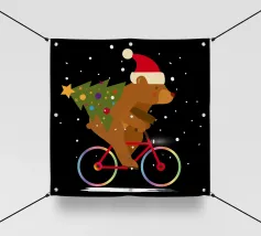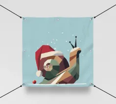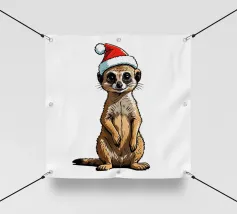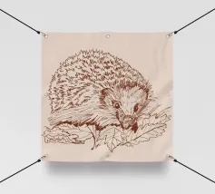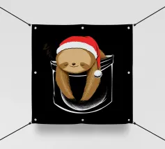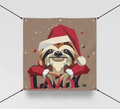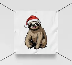 Un simpatico riccio con un cappello da Babbo Natale siede allegramente su una slitta ornata di agrifoglio. Sotto la slitta, la scritta "SLEDGEHOG" aggiunge un tocco giocoso al tema della festa.